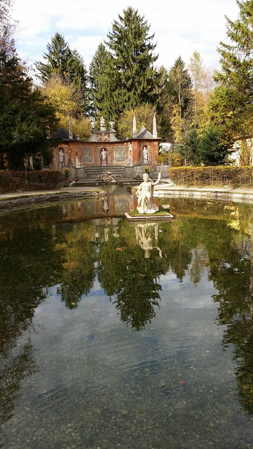 Dopo aver salutato lo staff dell’hotel e tutte le mucche del paese, sono ripartito alla volta di Salisburgo. Prima di recarmi in hotel ho deciso però di fermarmi a visitare il castello di Hellbrunn, che fu edificato nella prima metà del Seicento, per volere dell’arcivescovo di Salisburgo, Marcus Sittikus. Quest’ultimo aveva origini italiane e ciò è ben chiaro dagli scherzi da burlone, che ha disseminato nel suo castello. Nel grande parco attorno al castello sono disseminate numerose fontane, ancora funzionanti, che l’arcivescovo fece posizionare con l’intento di fare arguti scherzi agli ospiti della sua residenza e che ancora oggi sono utilizzate per sorprendere e divertire i numerosi visitatori. La più famosa è quella del tavolo delle cerimonie dove Sittikus aveva fatto progettare getti d’acqua che bagnavano tutti i convitati, mentre il capotavola rimaneva asciutto.